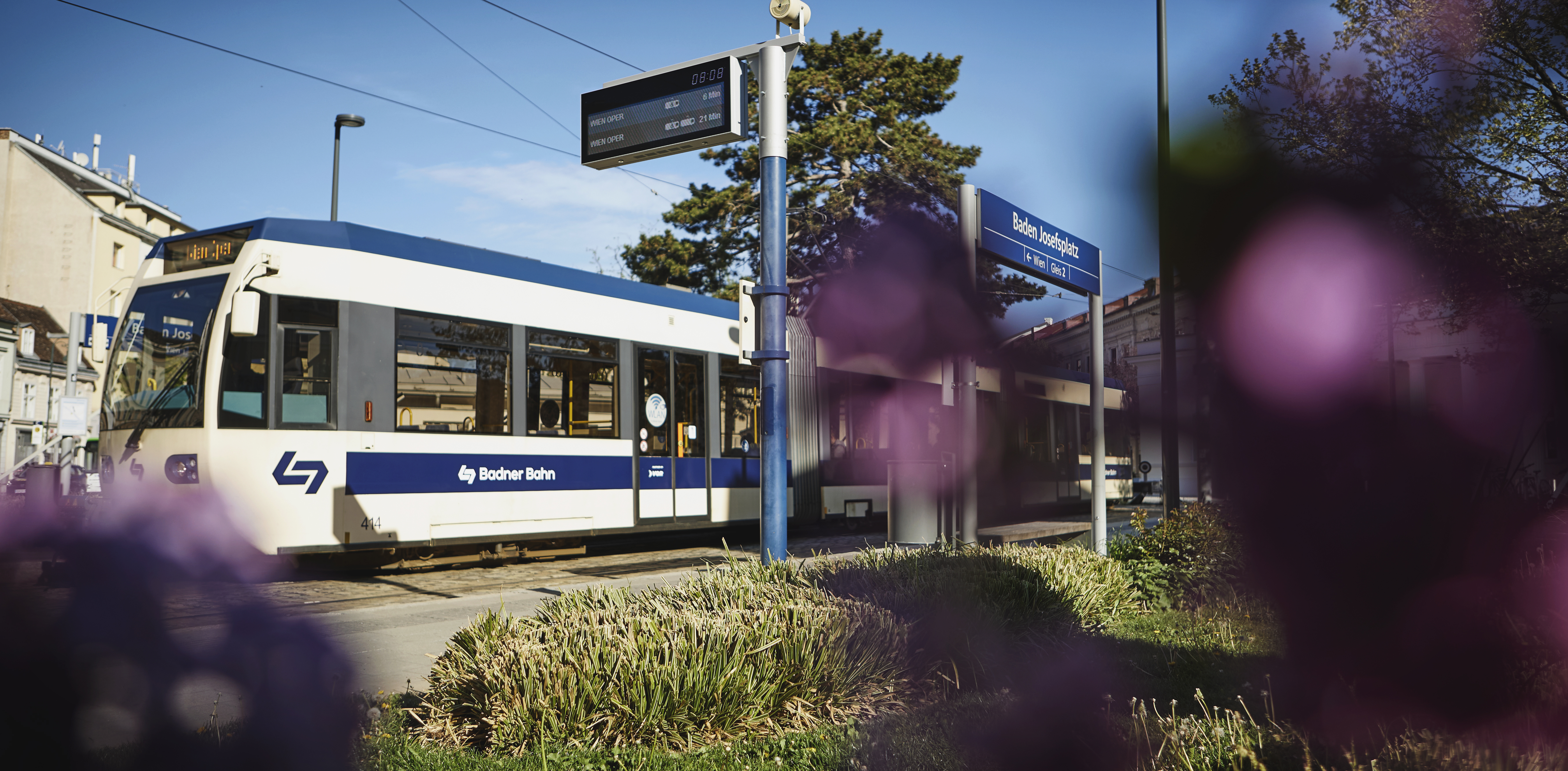 Badner Bahn im Stadtgebiet von Baden. Foto:WLB/Zinner