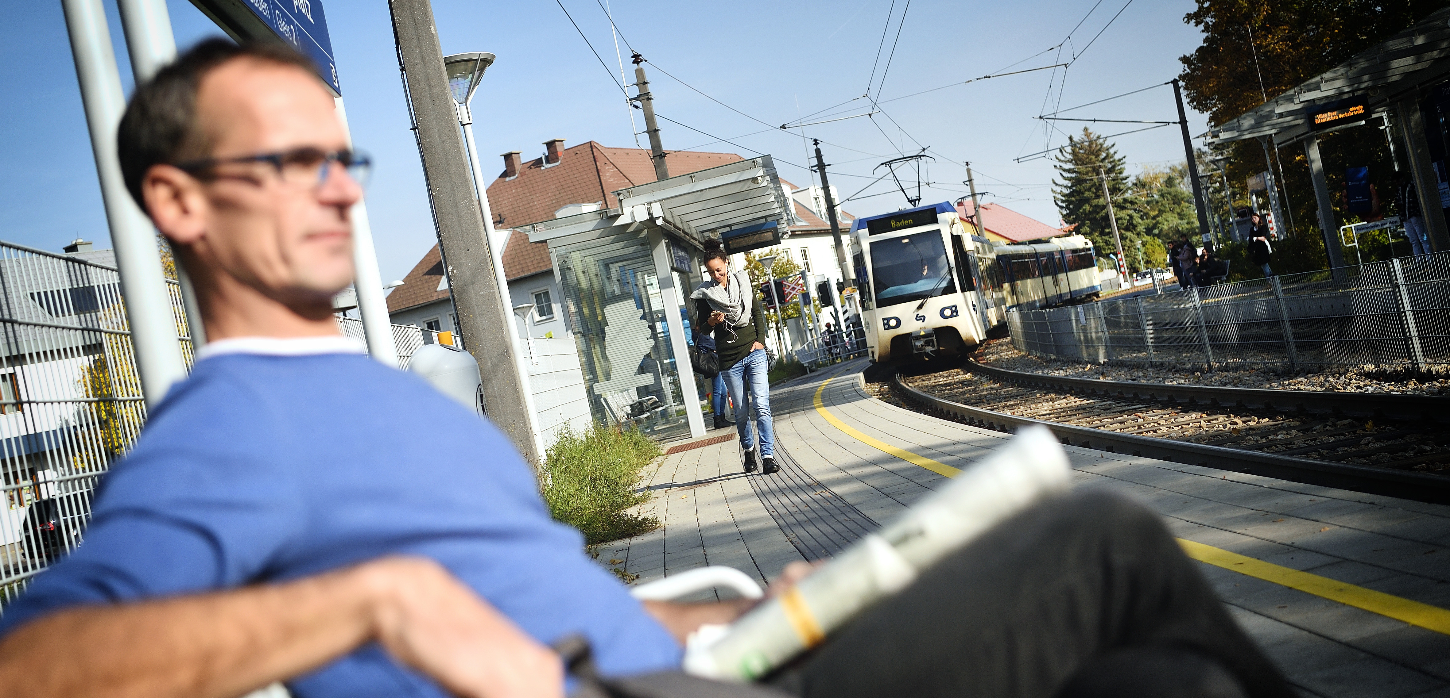 Fahrgäste unterwegs mit der Badner Bahn. (Foto: WLB/Zinner)
