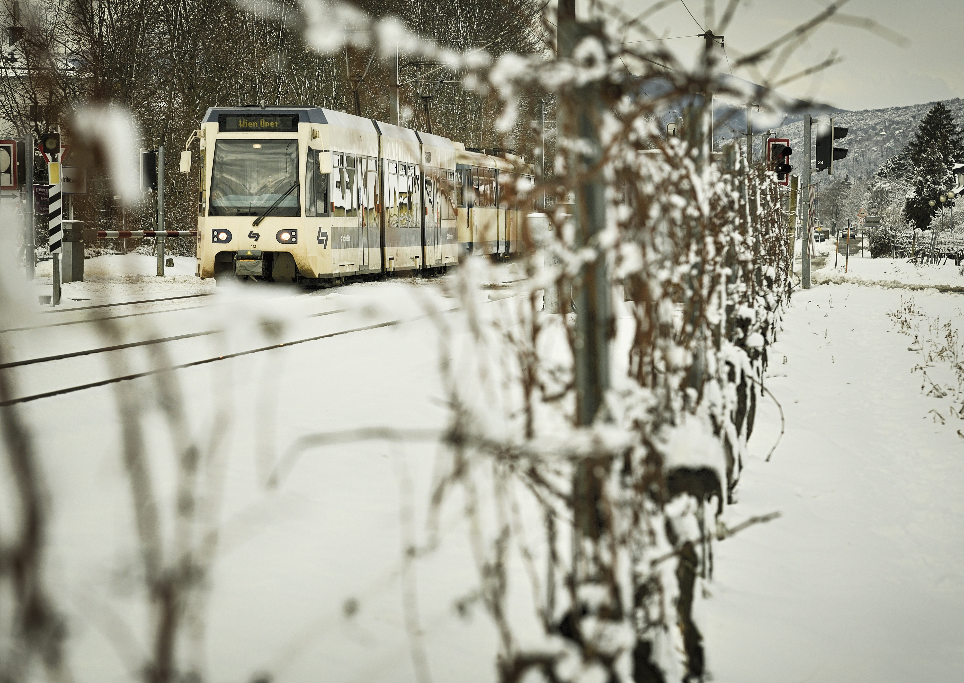 Badner Bahn im Winter. Foto: WLB/Zinner