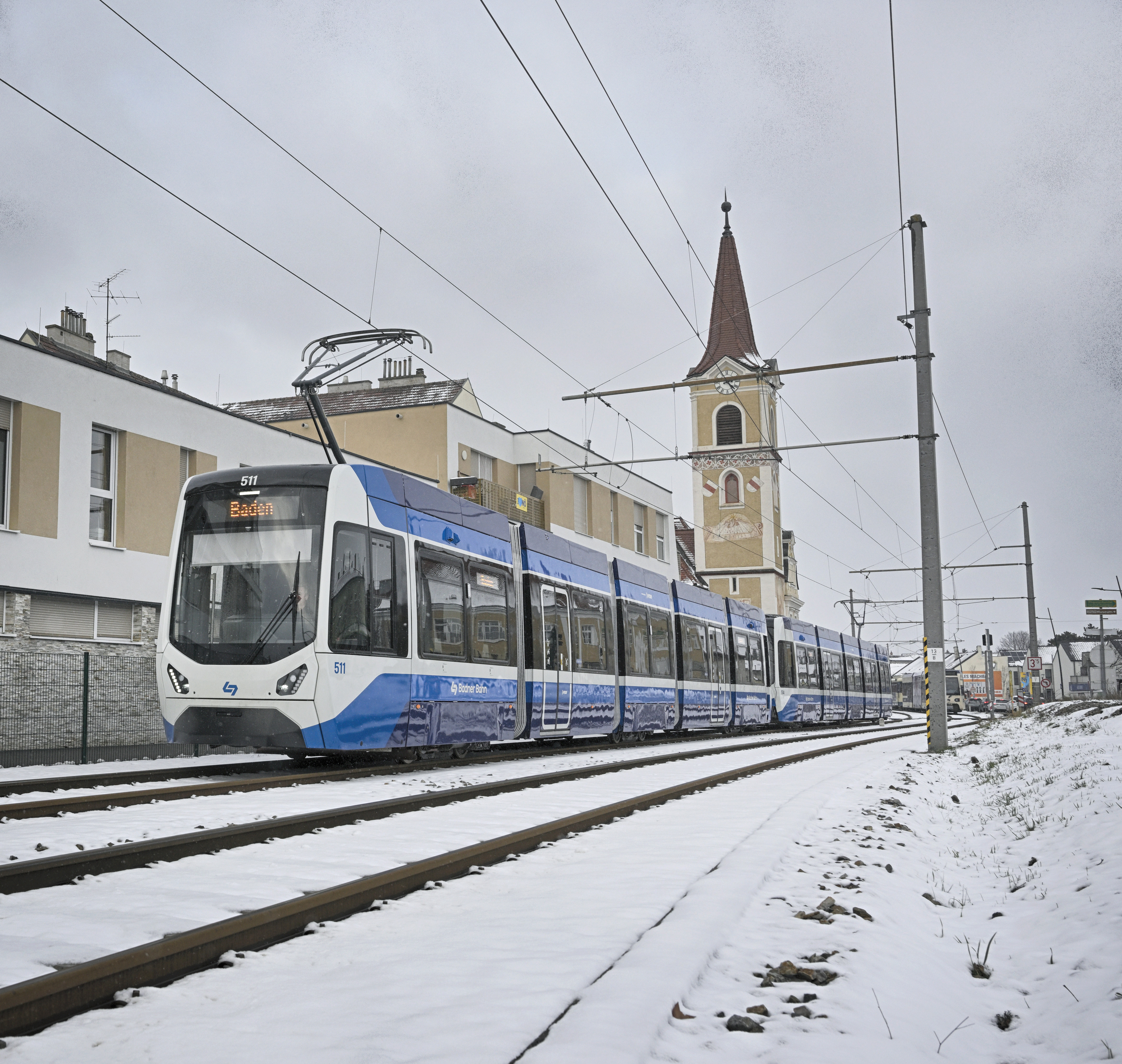 Die neuen Zugsgarnituren der Badner Bahn im Winter. Foto: WLB/Zinner
