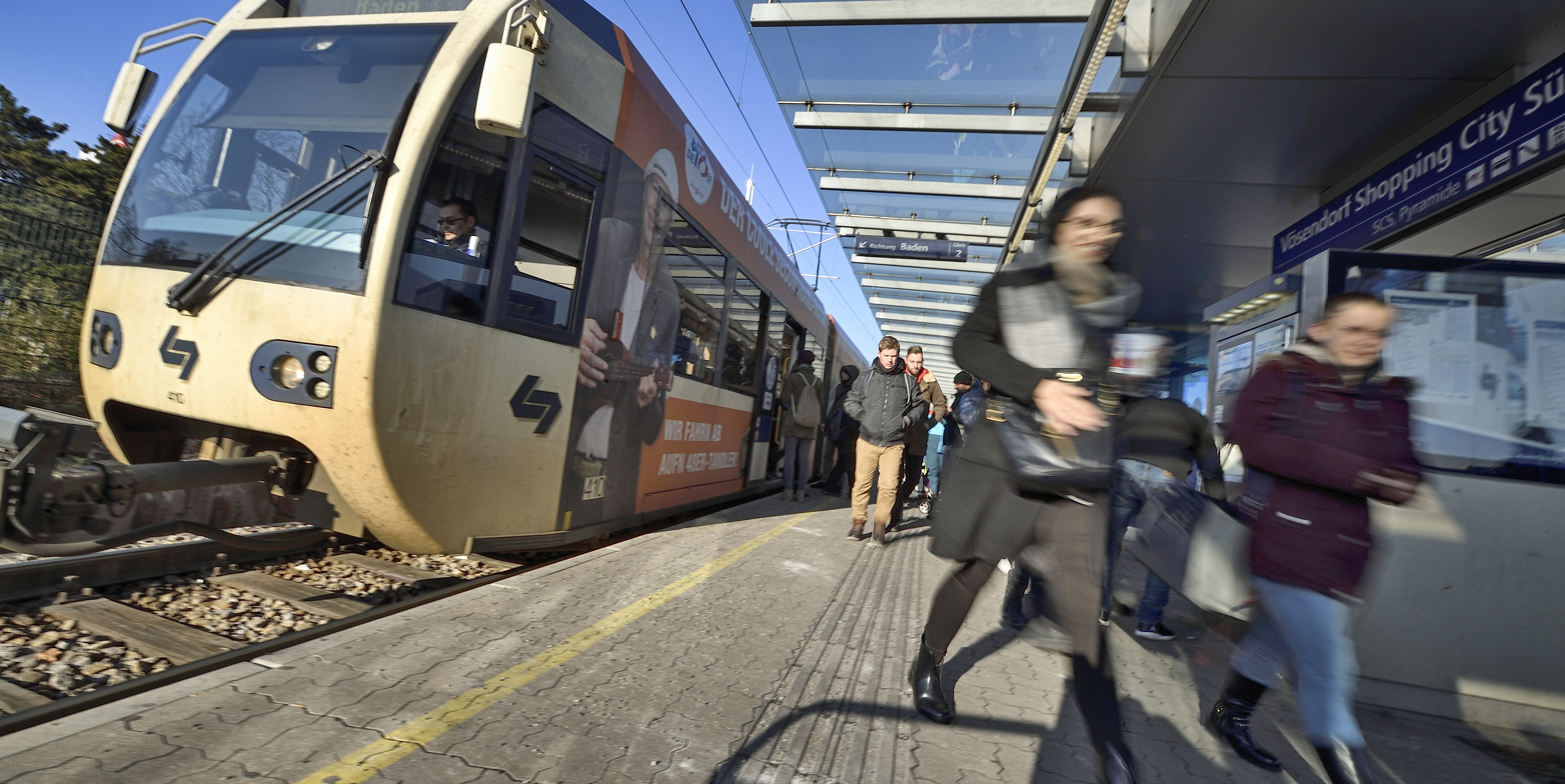 Mit der Badner Bahn staufrei und ohne Stress in die SCS. Foto: WLB / Johannes Zinner