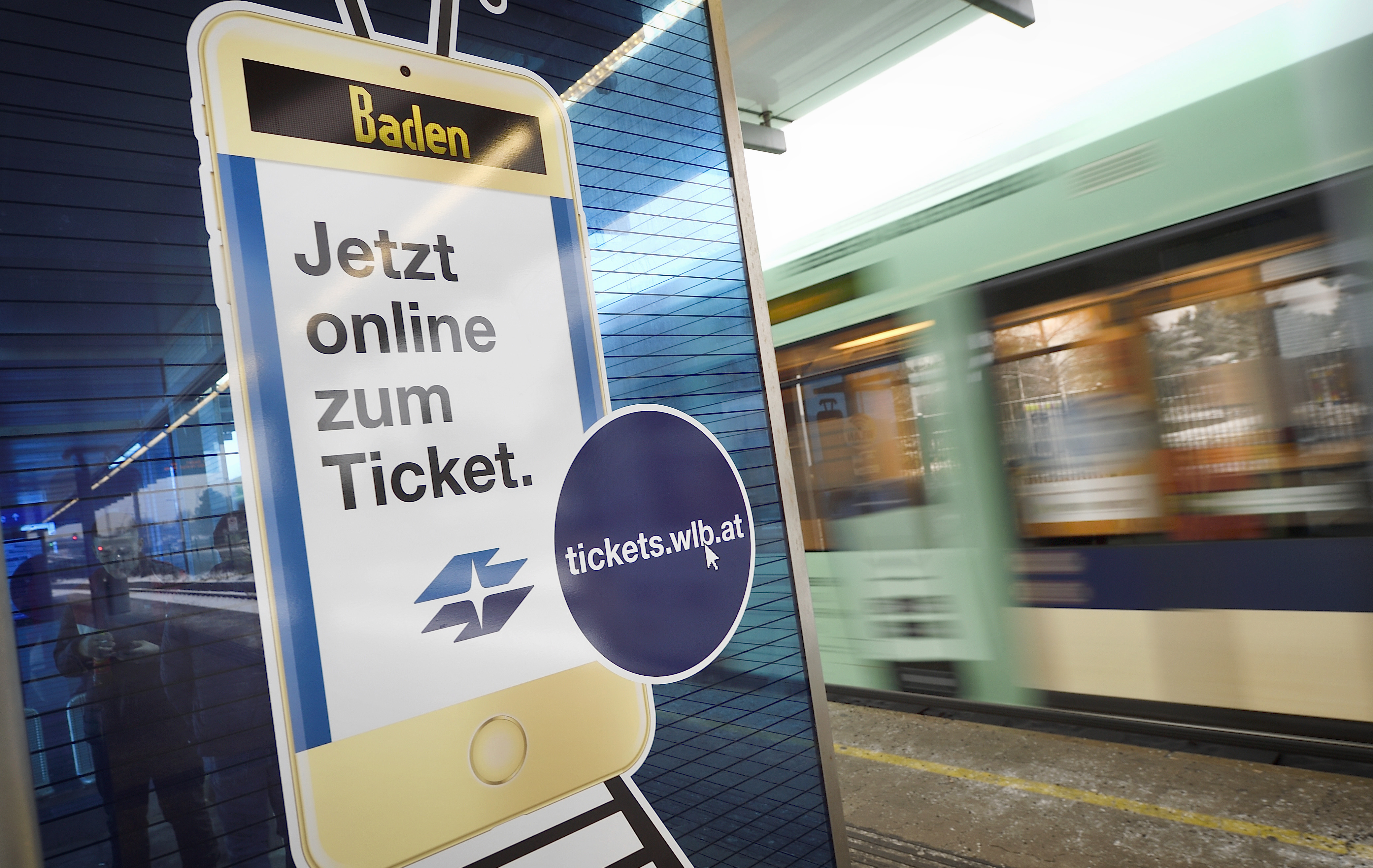 Imagebild Werbung im Haltestellenbereich für Online-Ticketing unter tickets.wlb.at. Foto: WLB / Johannes Zinner