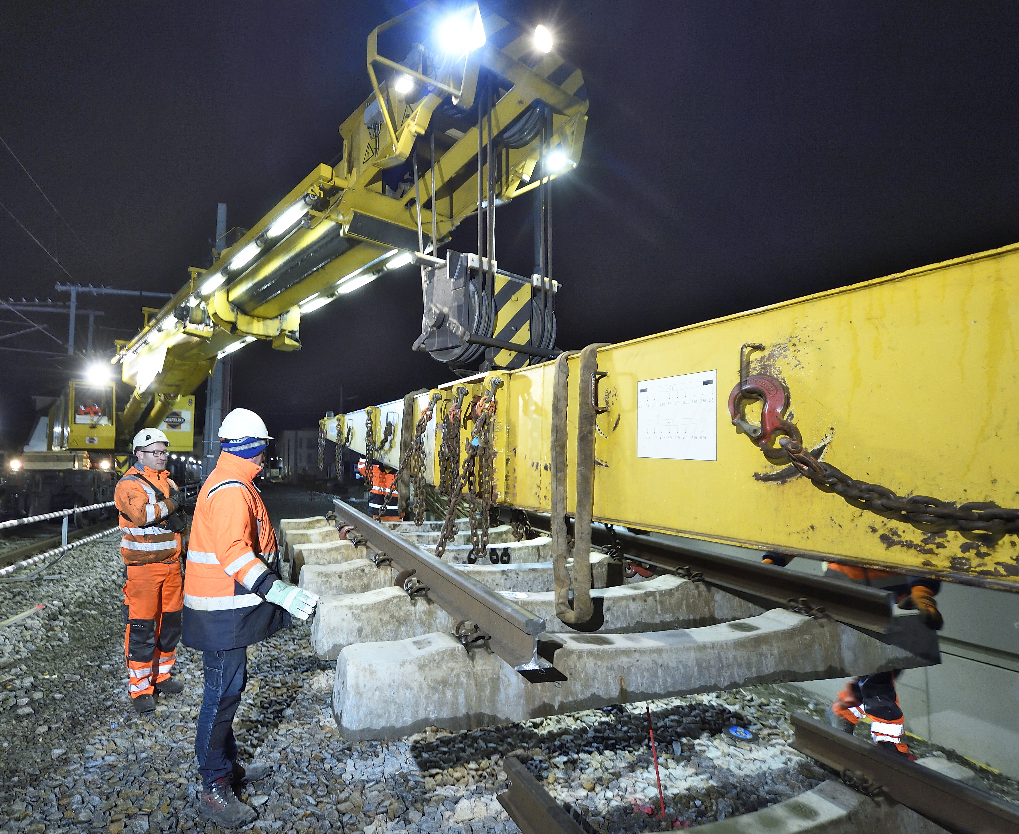Imagebild Instandhaltung Infrastruktur. Weicheneinbau im Bereich Bahnhof Inzersdorf. Foto: WLB / Johannes Zinner