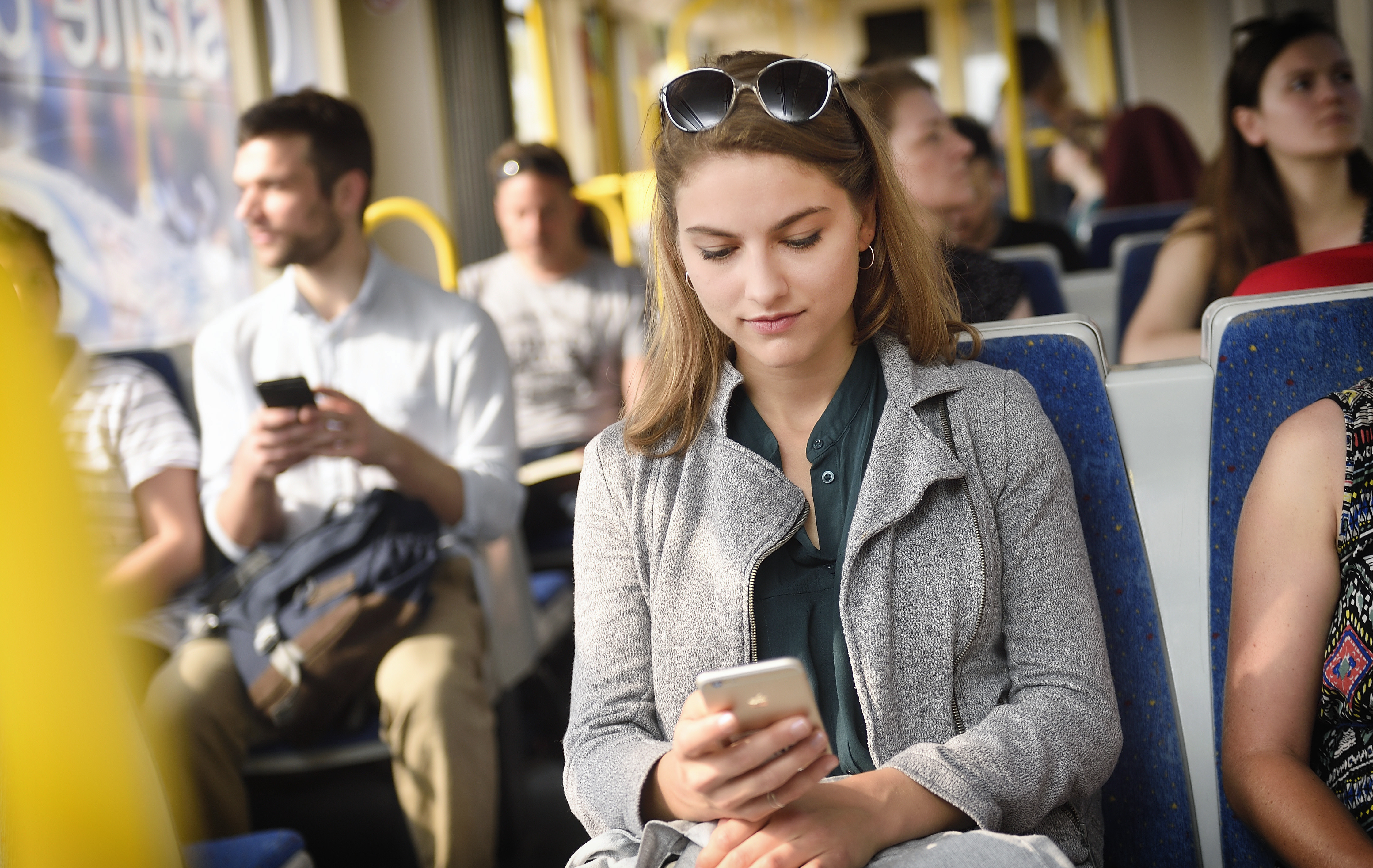 Fahrgäste unterwegs mit der Badner Bahn