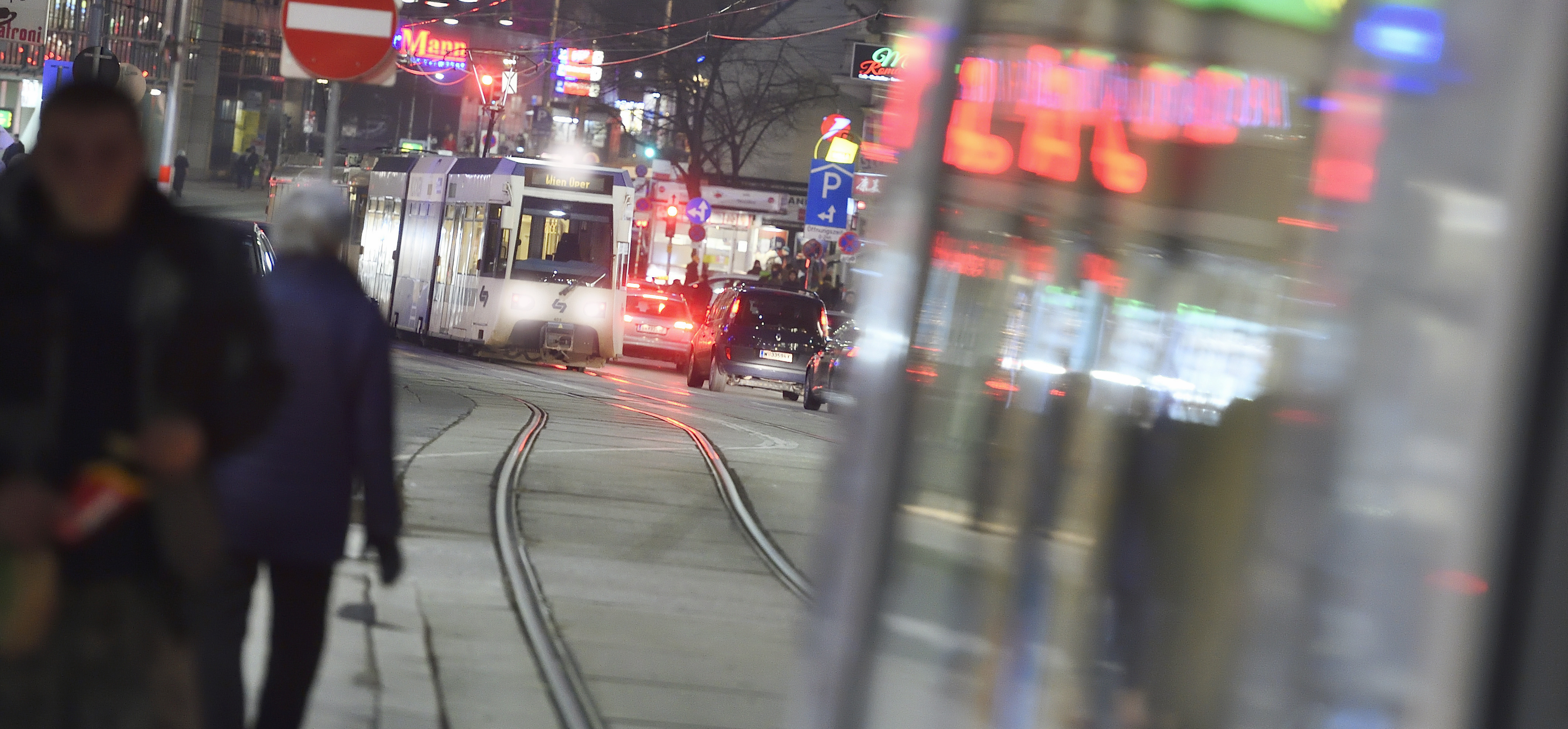 Badner Bahn im Advent unterwegs in der Wiedner Hauptstraße. Foto: WLB / Johannes Zinner