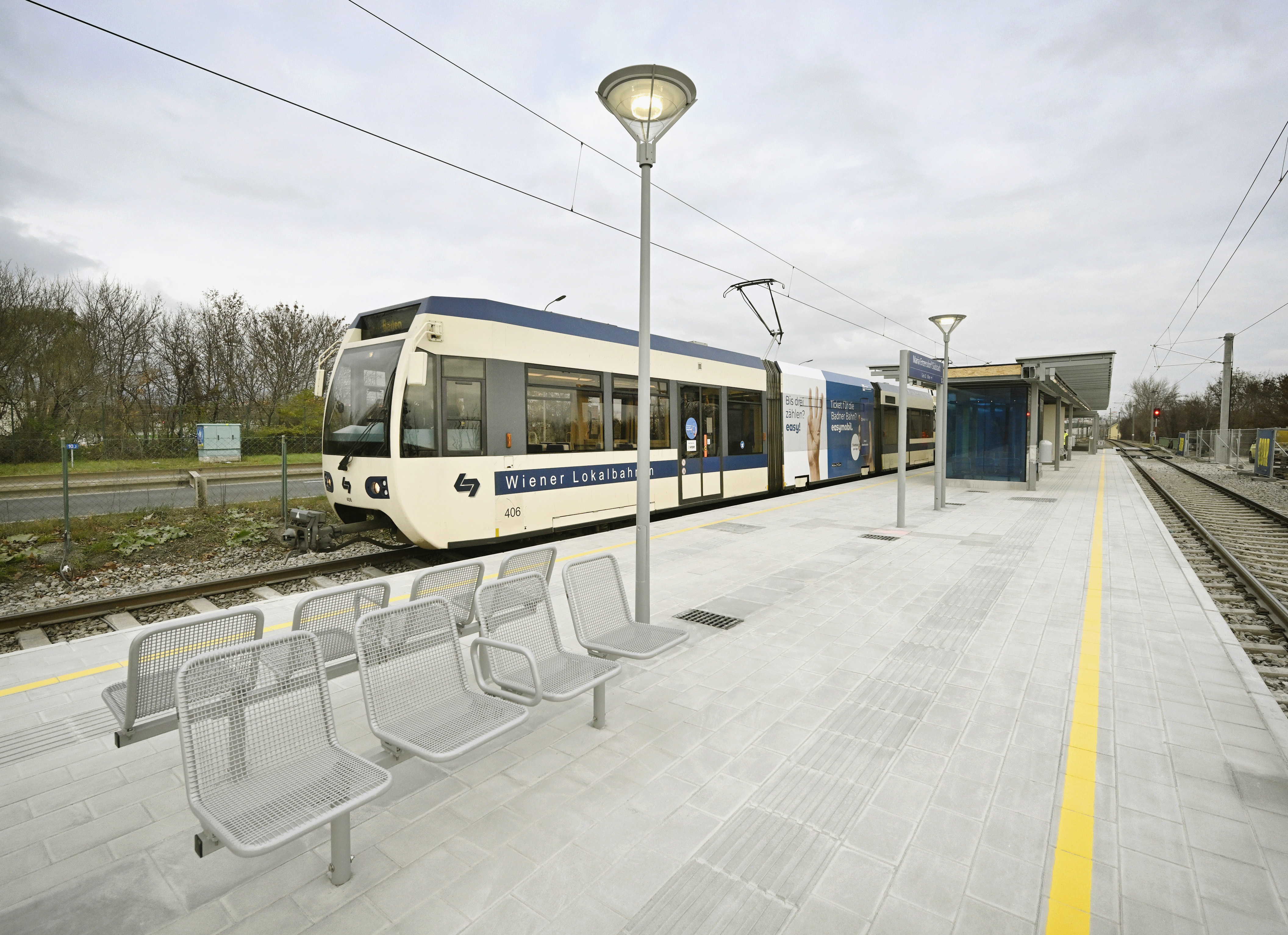Die modernisierte Haltestelle Maria Enzersdorf Südstadt der Badner Bahn ist für die Fahrgäste wieder geöffnet (Foto: WLB/Zinner)