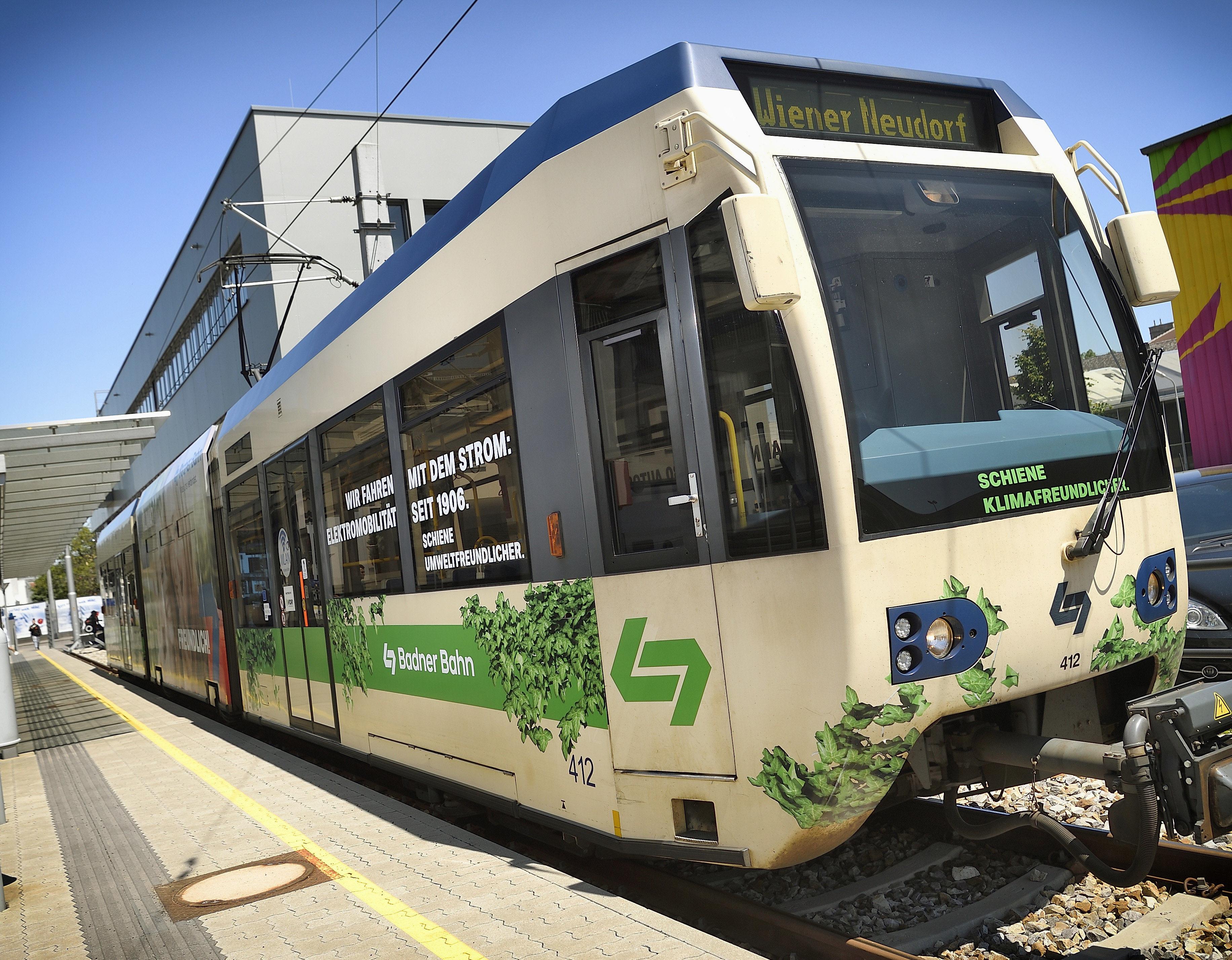 Die Wiener Lokalbahnen machen mit der Klimaschutzbahn auf die wichtige Rolle des öffentlichen Verkehrs in Sachen Klimaschutz aufmerksam. Foto: WLB/Zinner